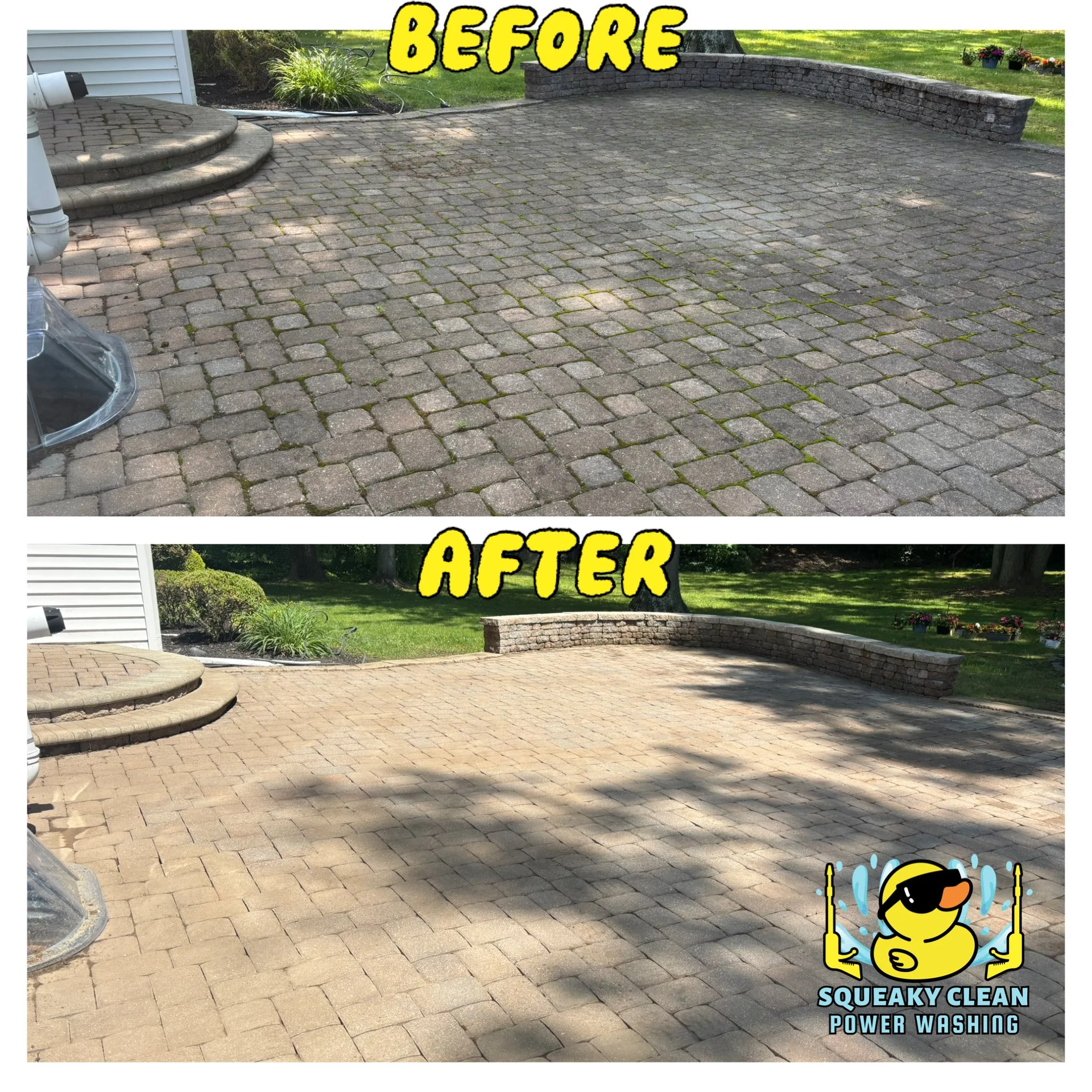 Video of a step-by-step paver and concrete patio renovation in Bordentown, NJ. We pressure washed the patio and eliminated all the dirt, grime, moss, and weeds. We then sanded the joints to prevent any further regrowth between the joints of the pavers.